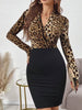 Design 2-in-1: parte superiore con stampa leopardata e scollo a V incrociato, abbinata a una gonna nera a tubino che valorizza le curve.
